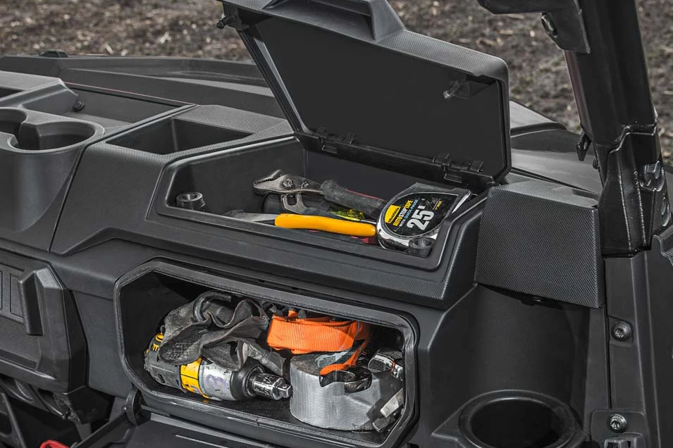 Využijte snadno přístupný úložný prostor v kabině a pod sedadlem pro své vybavení. Do dvou integrovaných odkládacích schránek můžete uložit potřebné věci a na nápoje využít až osm velkých držáků. Navíc si můžete nabíjet telefon pomocí nabíjecího portu USB.