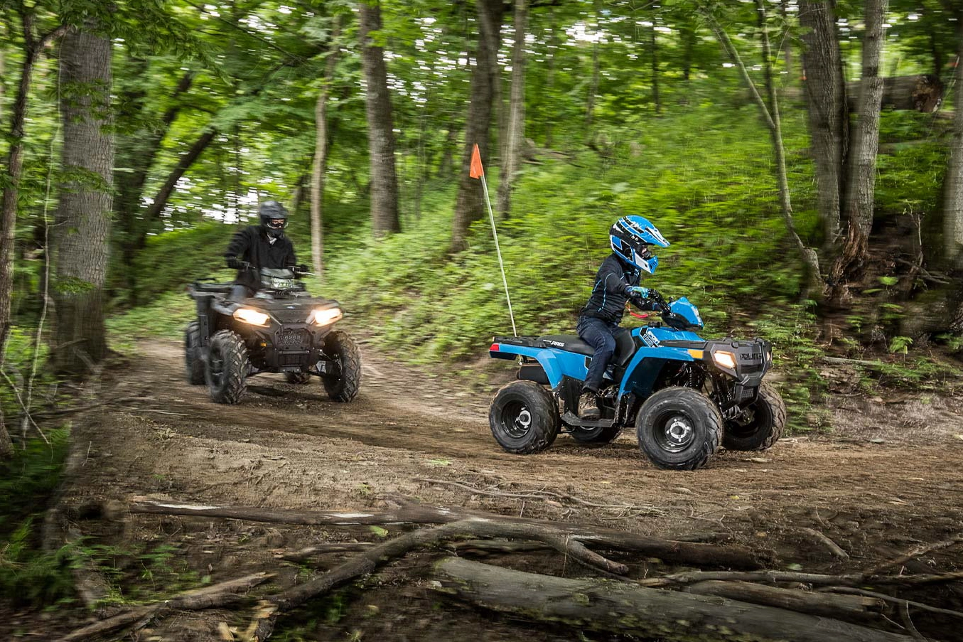Sportsman 110 je připraven na jízdu včetně kompletní bezpečnostní výbavy zahrnující vytrhávací pojistku, bezpečnostní vlajku, bezplatné online školení a sadu nářadí.
